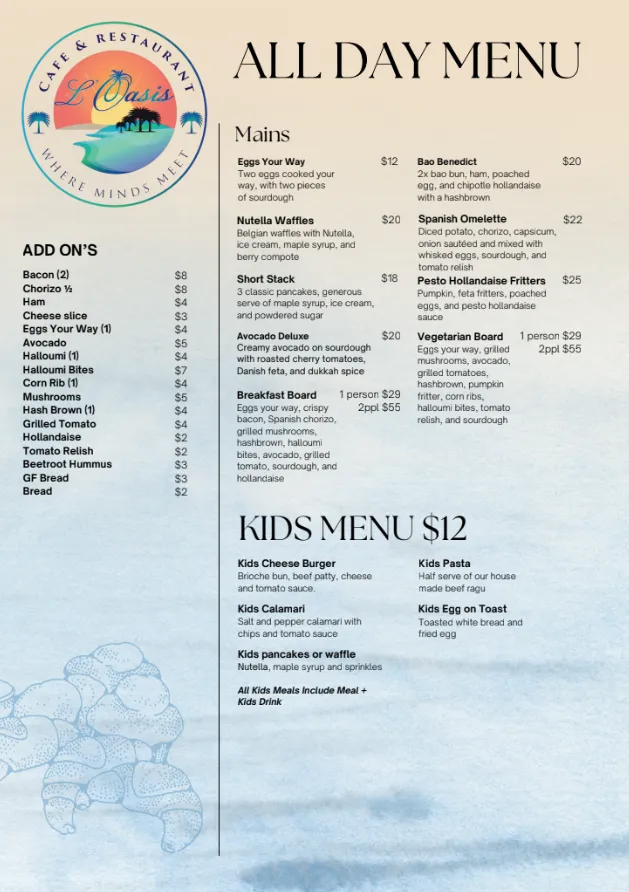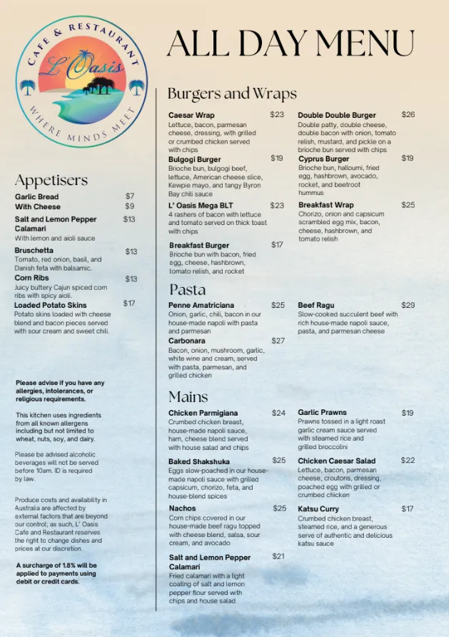 © 2026 L' Oasis Cafe Bar & Restaurant. All rights reserved.